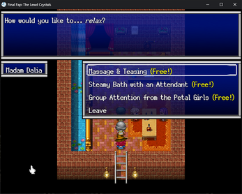 Same structure-ISH, you mean. Can't choose your own classes like in the OG FF for NES. ;) Joking aside, Looking forward to trying this when you get it moving along. Was recently looking for Dragon Quest and FF hentai mod roms I used to own in the late 90's and couldn't find any anywhere online anymore, surprisingly enough, so this is perfectly timed! Should have named it Final Faptasy though, imho. :P Will you be making enemies have battle damage, like clothing is torn or removed based on HP remaining?